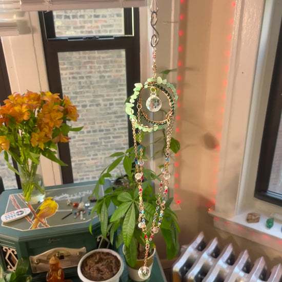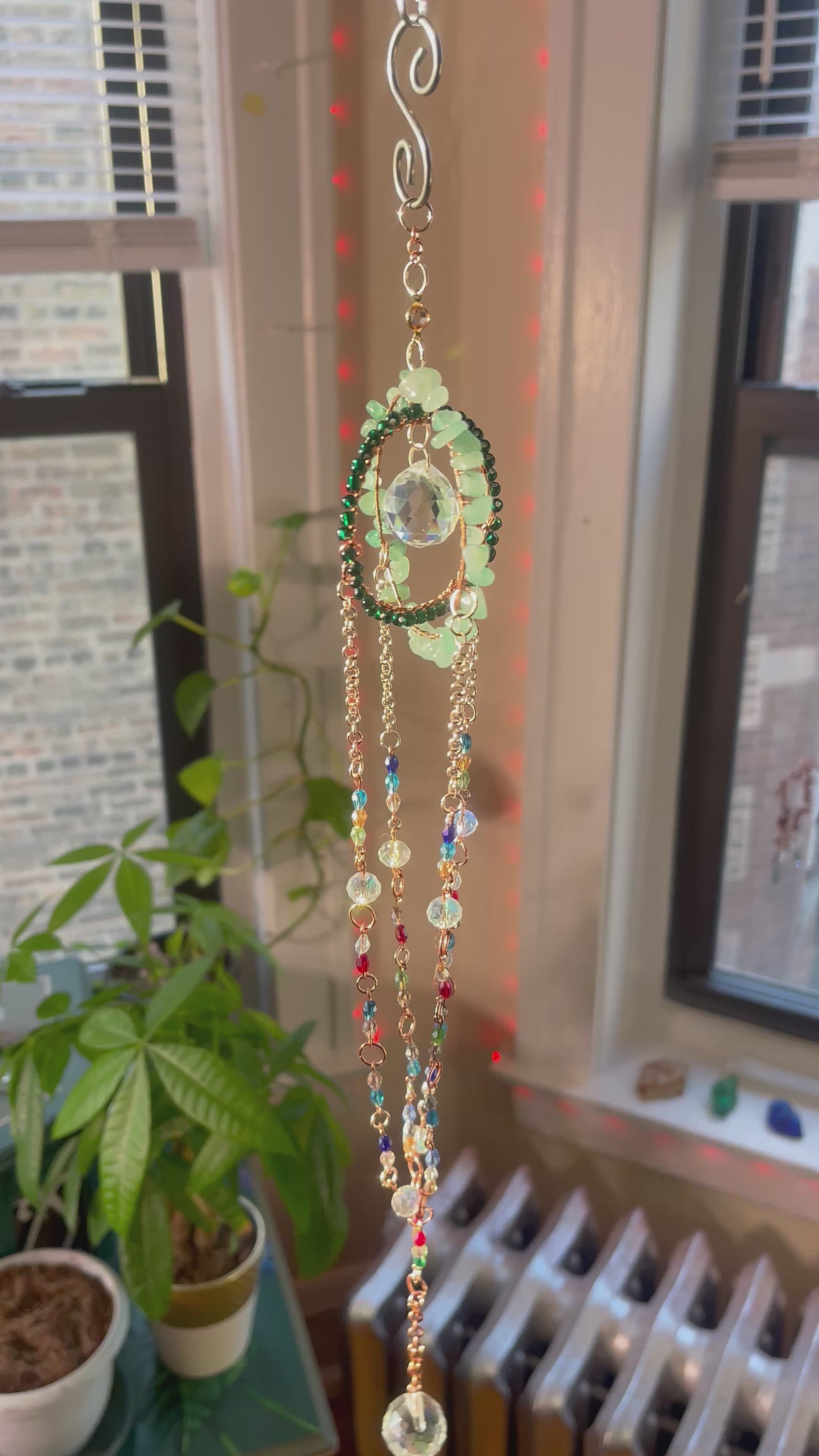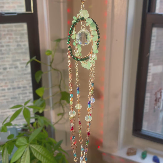 I really wanted to bring the magic of the forest into these pieces. Prism crystals throughout to shoot rainbows across your space. Place in a direct sun sunny window and watch this sun catcher transform your space :)