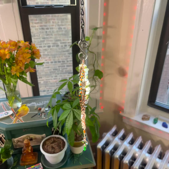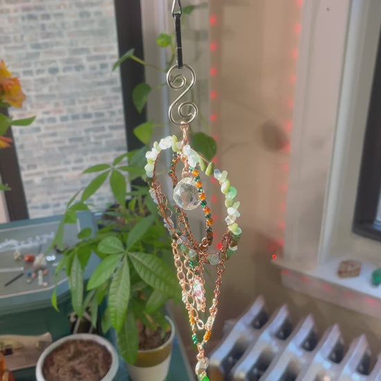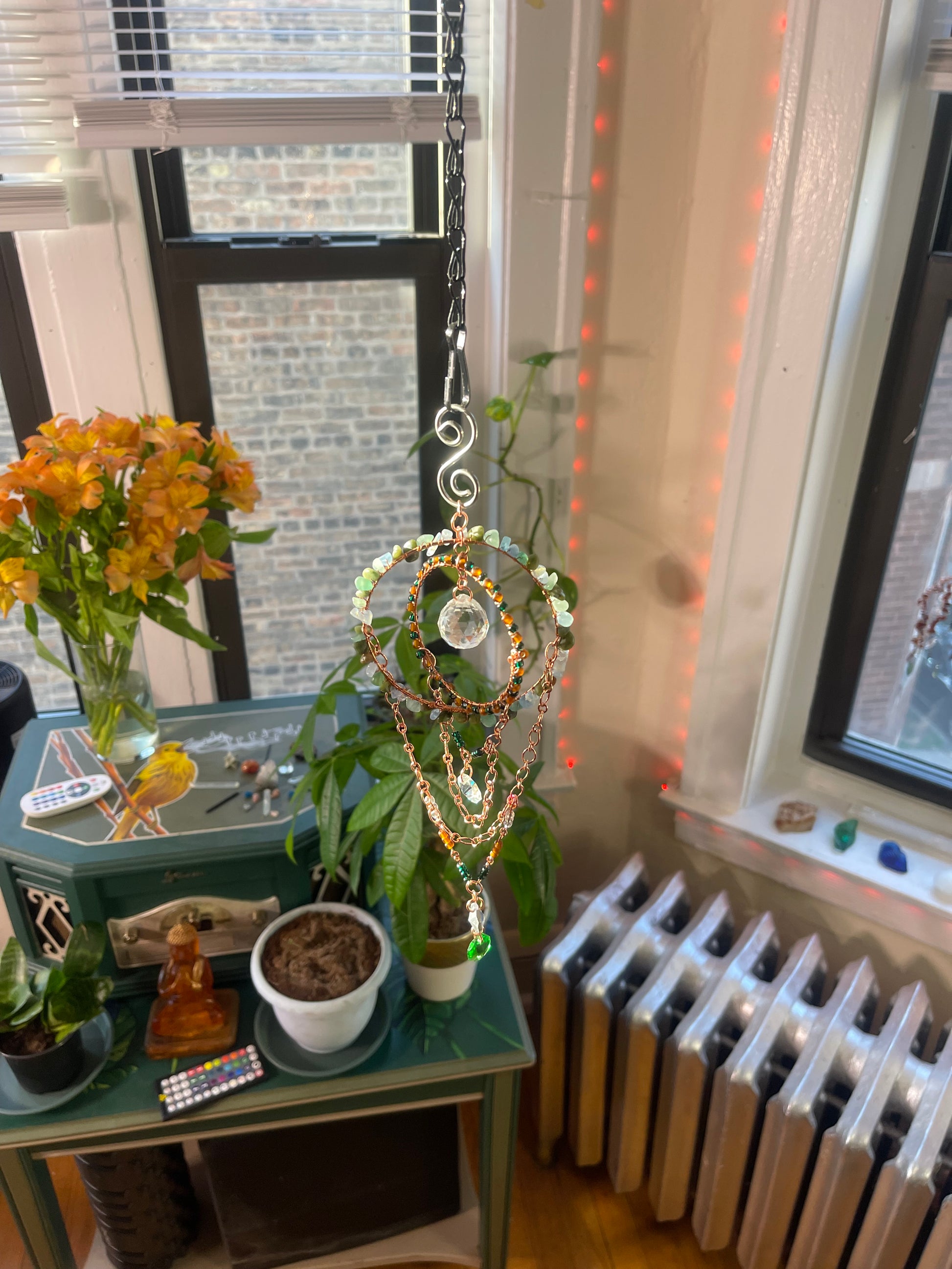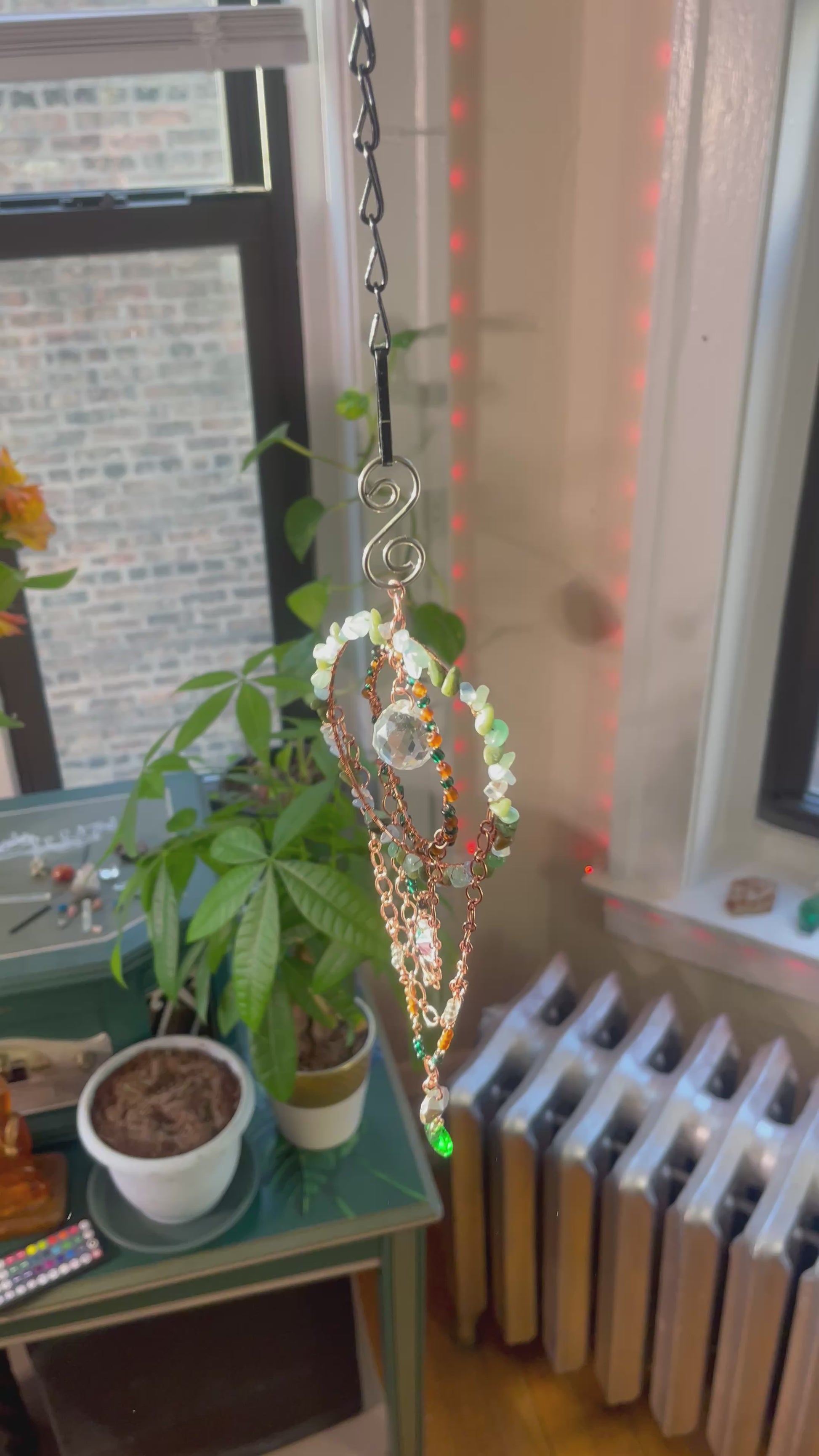 I really wanted to bring the magic of the forest into these pieces. Prism crystals throughout to shoot rainbows across your space. Place in a direct sun sunny window and watch this sun catcher transform your space :)