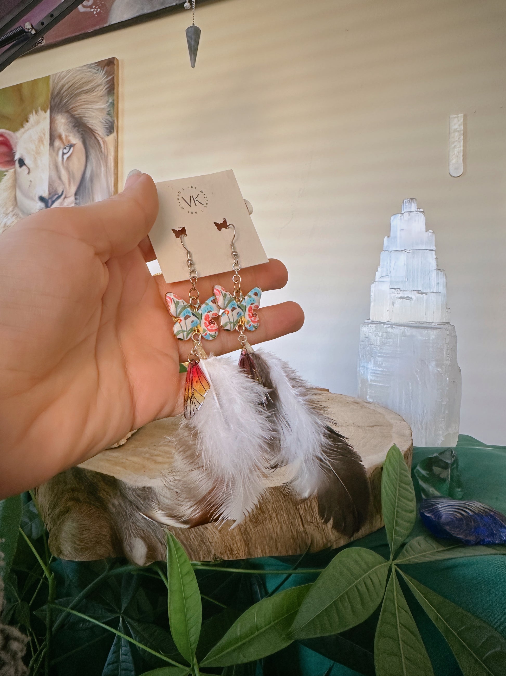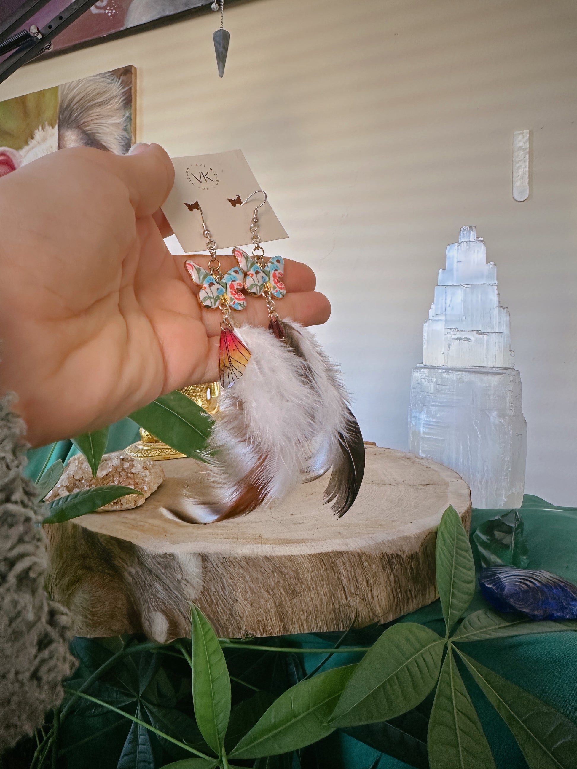 Handmade and one of a kind sterling silver Butterfly & wing gemstone feather earrings. Featuring pheasant feathers locally and humanely sourced.